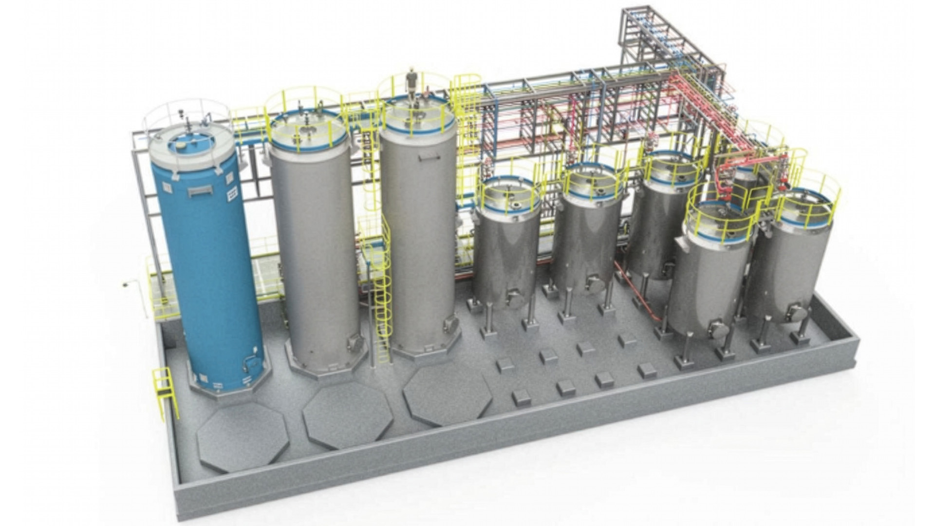 - Process pipework, pumps, and valves